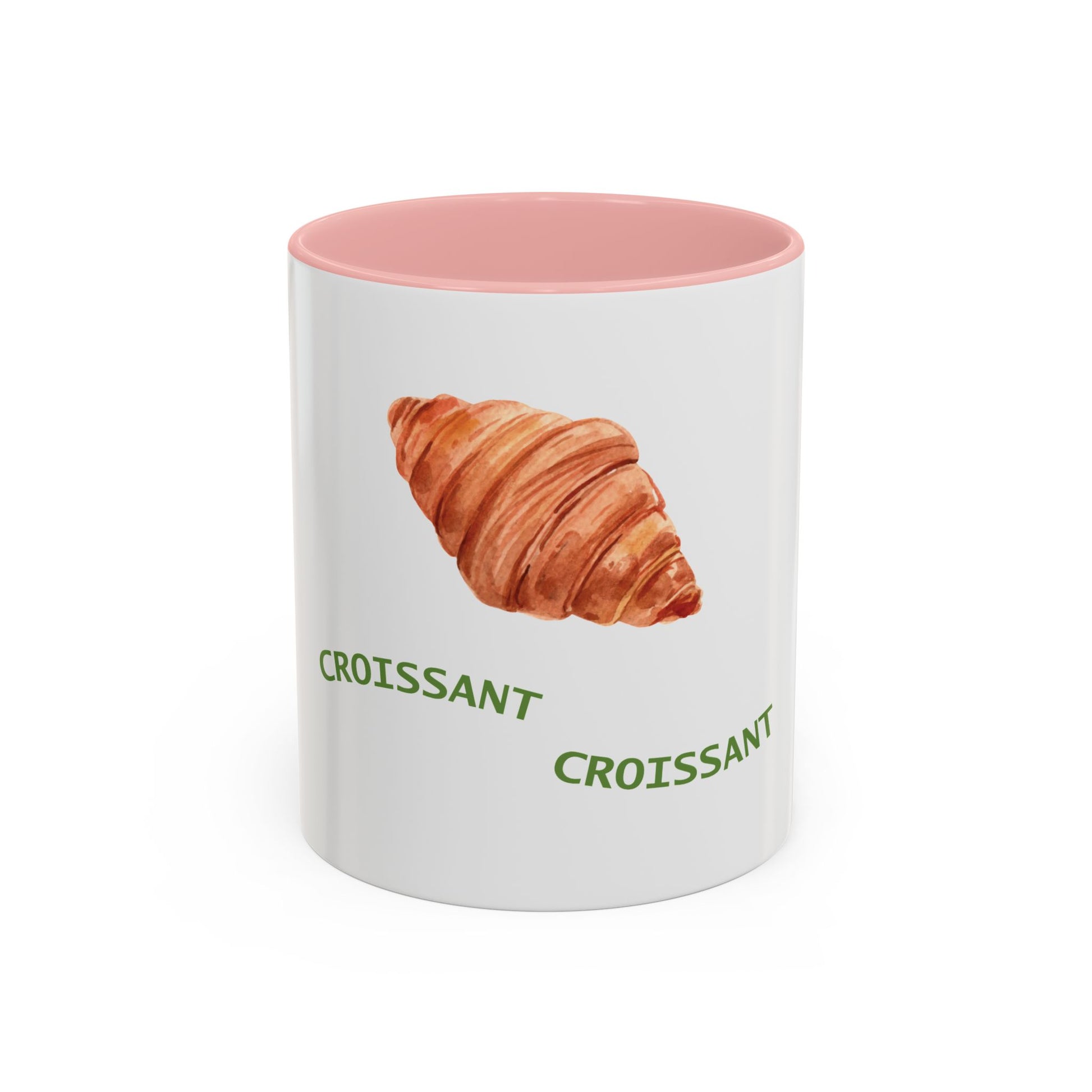 Warm morning light, a flaky croissant on your plate. This ceramic accent mug brings a playful bakery vibe to slow breakfasts and busy kitchen counters alike. The soft pink interior and handle frame the simple watercolor croissant print. It sings with coffee, tea, or hot chocolate and slips easily into the ritual of someone who loves cozy mornings, weekend baking, and little rituals that make the day gentler.